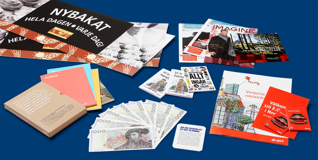 Vi levererar och tar ansvar för allt från stora rullproduktioner till små enklare tryckuppdrag. Du frågar och vi offererar enligt era behov och önskemål.